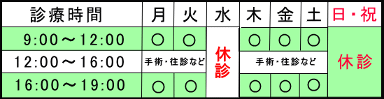 ●診療日時は都合により変更になることがありますので電話でお問い合わせください。